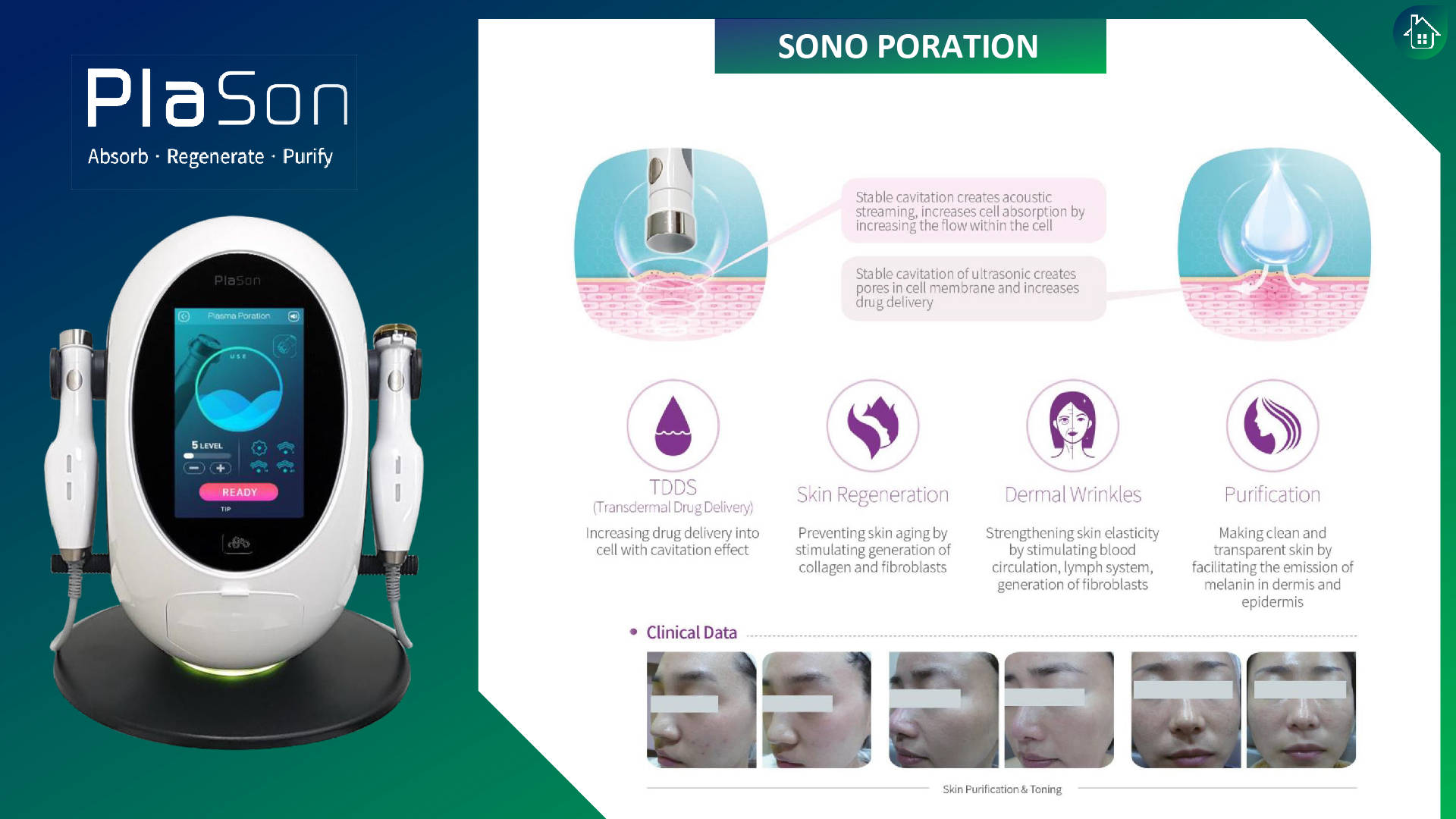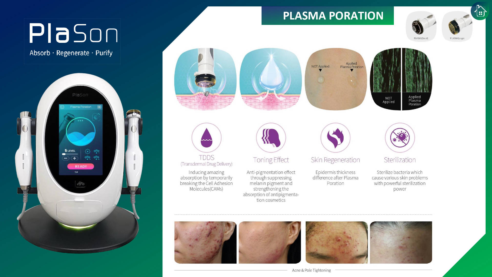 PlaSon facial services combine the power of ultrasonic technology and plasma, the fourth state of matter consisting of ionised gas, to bring multiple benefits to the skin with virtually no down time. It effectively targets acne, inflammation, wrinkles, hyperpigmentation, skin regeneration & Collagen production. This advanced, non-invasive device also enhances the efficacy of skin treatment programs by boosting the absorption of essential skincare products into skin tissues.