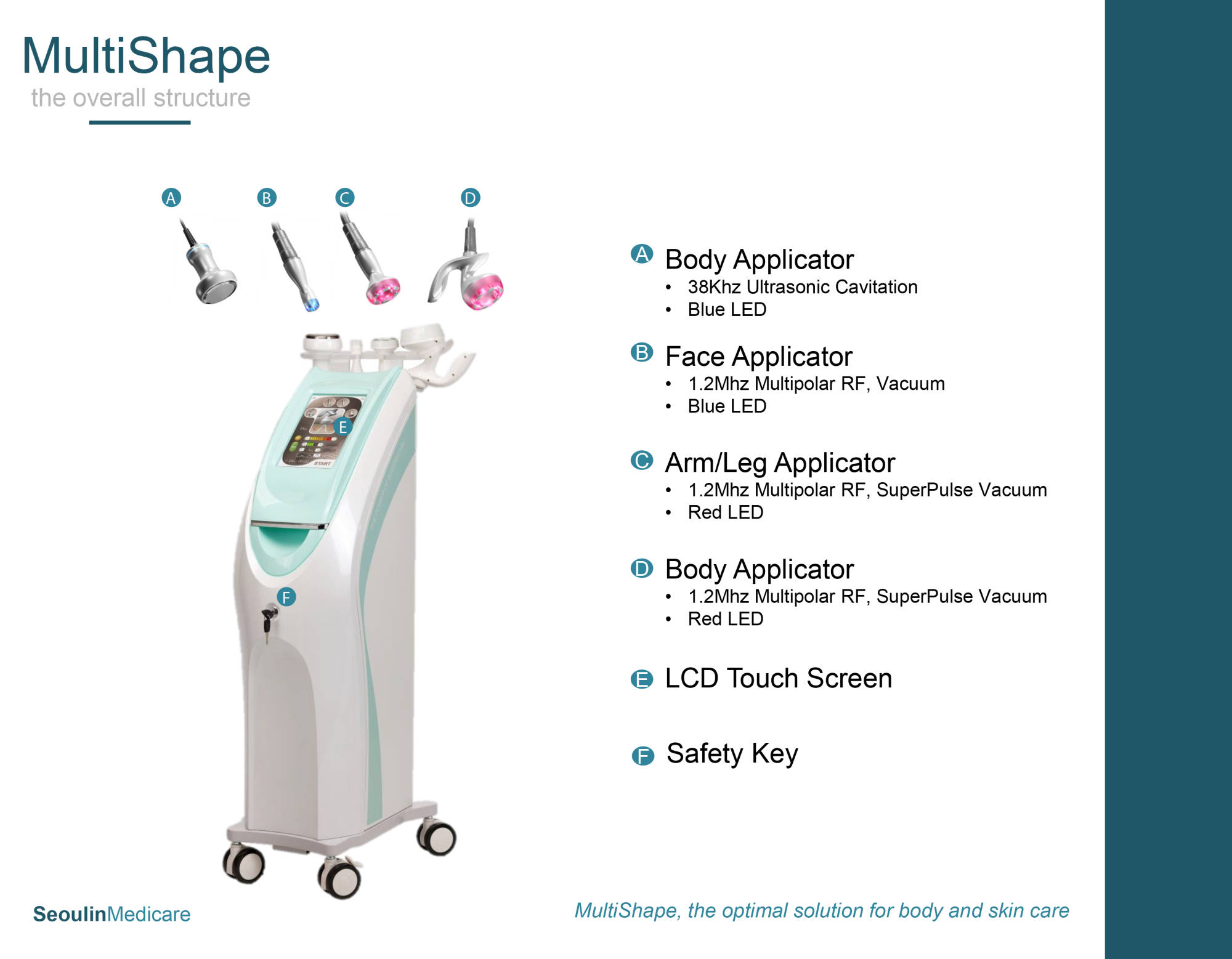 • Using a diverse array of applicators, it is an easy and convenient way for whole body management (removable method and automatic recognition function).